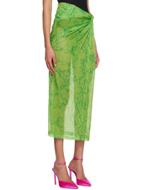 Semi-sheer polyester mesh skirt. · Graphic pattern printed throughout. · Knot detailing at asymmetric waist Supplier color: Snake green 100% polyester. Made in France 231302F092005