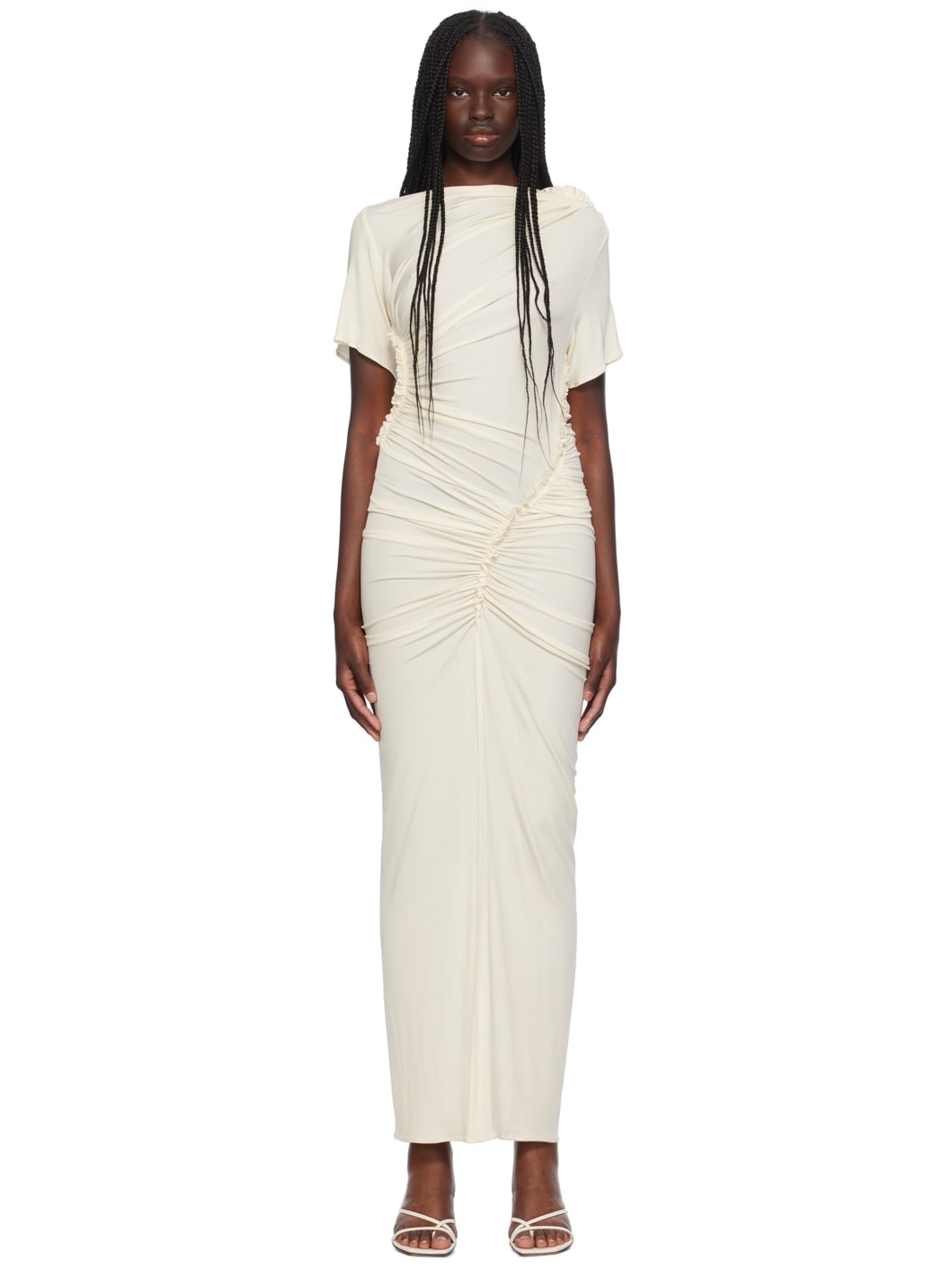 Off-White Ruched Midi Dress