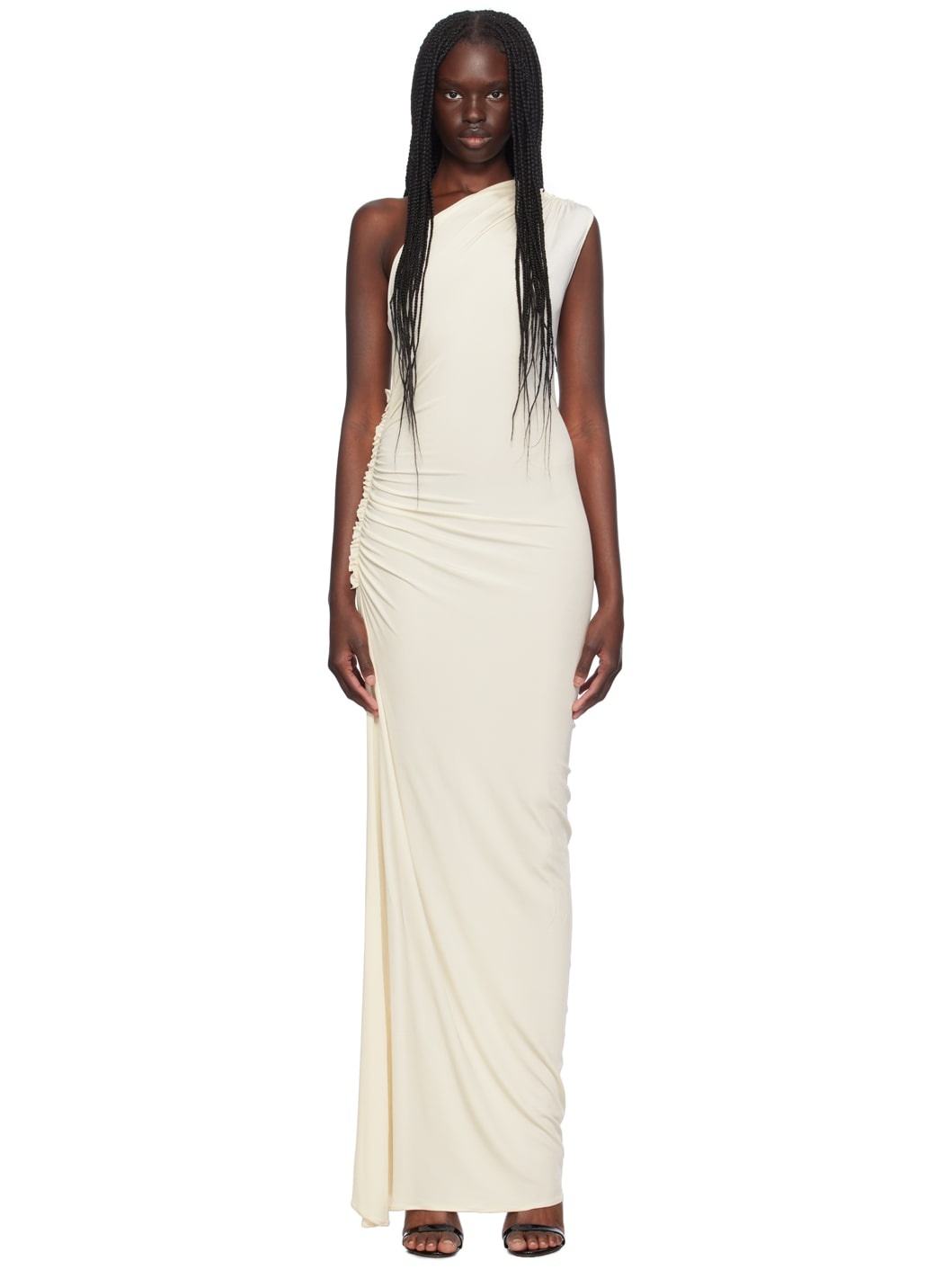 SSENSE Exclusive Off-White Asymmetric Ruched Single-Shoulder Maxi Dress