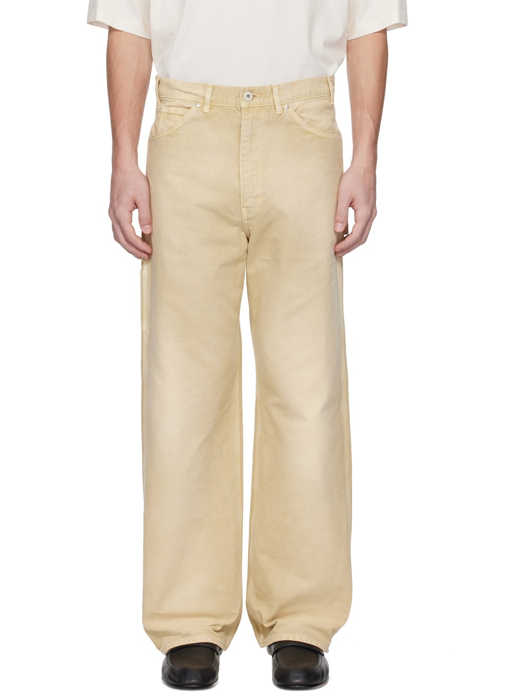 Garment-dyed organic cotton duck canvas trousers. Fading throughout. · Loose-fit and straight-leg · Belt loops · Five-pocket styling · Zip fly · Patch pockets at outseam · Hammer loop at outseam Supplier color: Light beige 100% cotton. Made in Japan 252484M191020