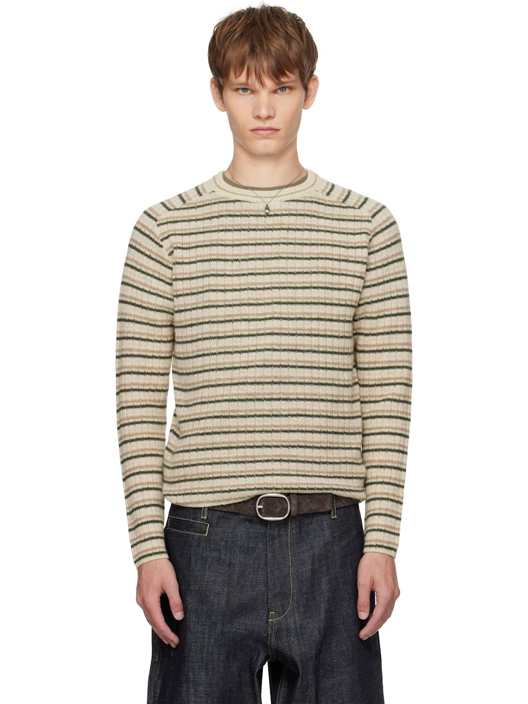 Brushed rib-knit Shetland wool- and cashmere-blend sweater. · Striped throughout · Crewneck · Saddle shoulders Supplier color: Beige stripe 62% wool, 38% cashmere. Made in Japan 252484M201003