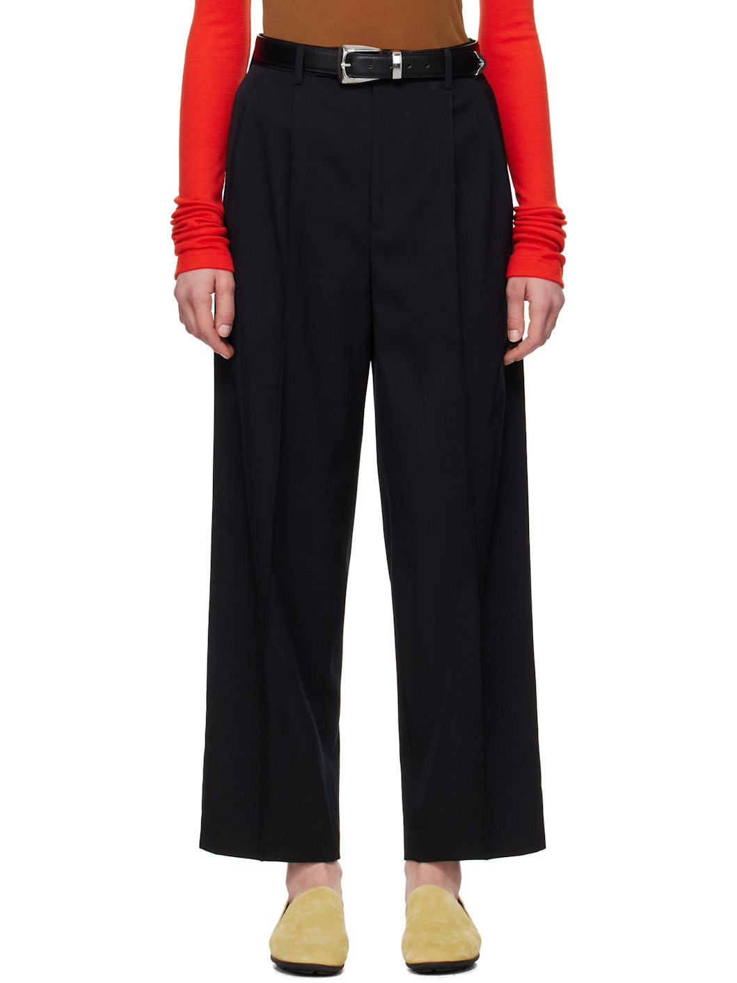 Super 140s wool gabardine trousers. Water-repellent and wrinkle-resistant. · Loose-fit and tapered · Belt loops · Four-pocket styling · Zip fly · Pleats at front · Creased legs · Partially lined Supplier color: Top black Body: 100% wool. Lining: 100% cupro. Made in Japan 251484F087005