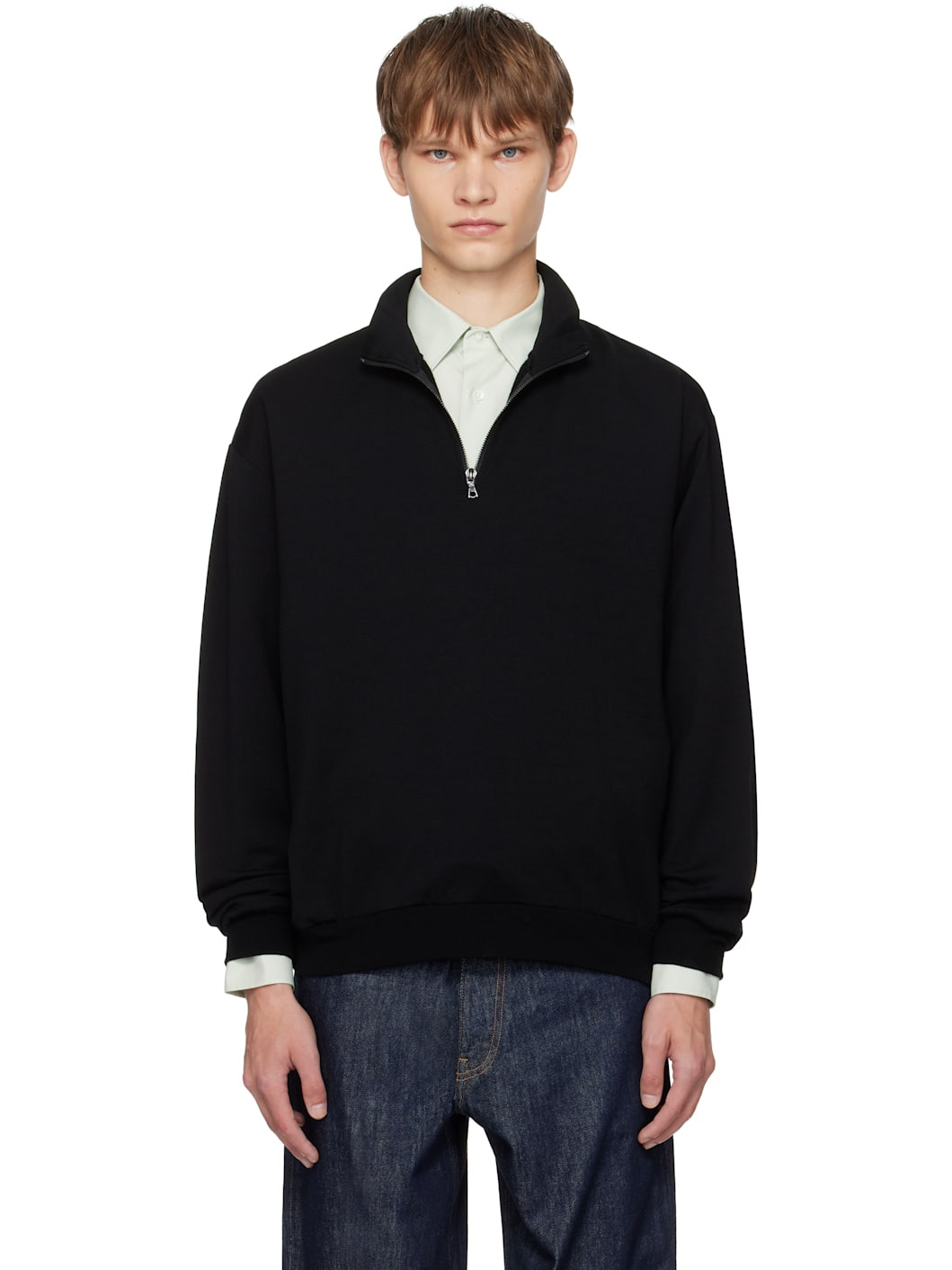 Black Light Wool Sweat Half Zip Sweatshirt