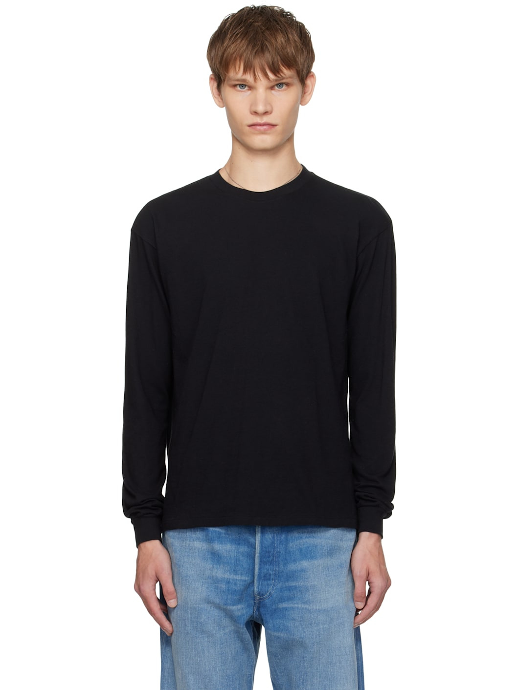 Lightweight extra-long staple cotton jersey T-shirt. Rib-knit crewneck and cuffs. Supplier color: Black 100% cotton. Made in Japan 252484M213006