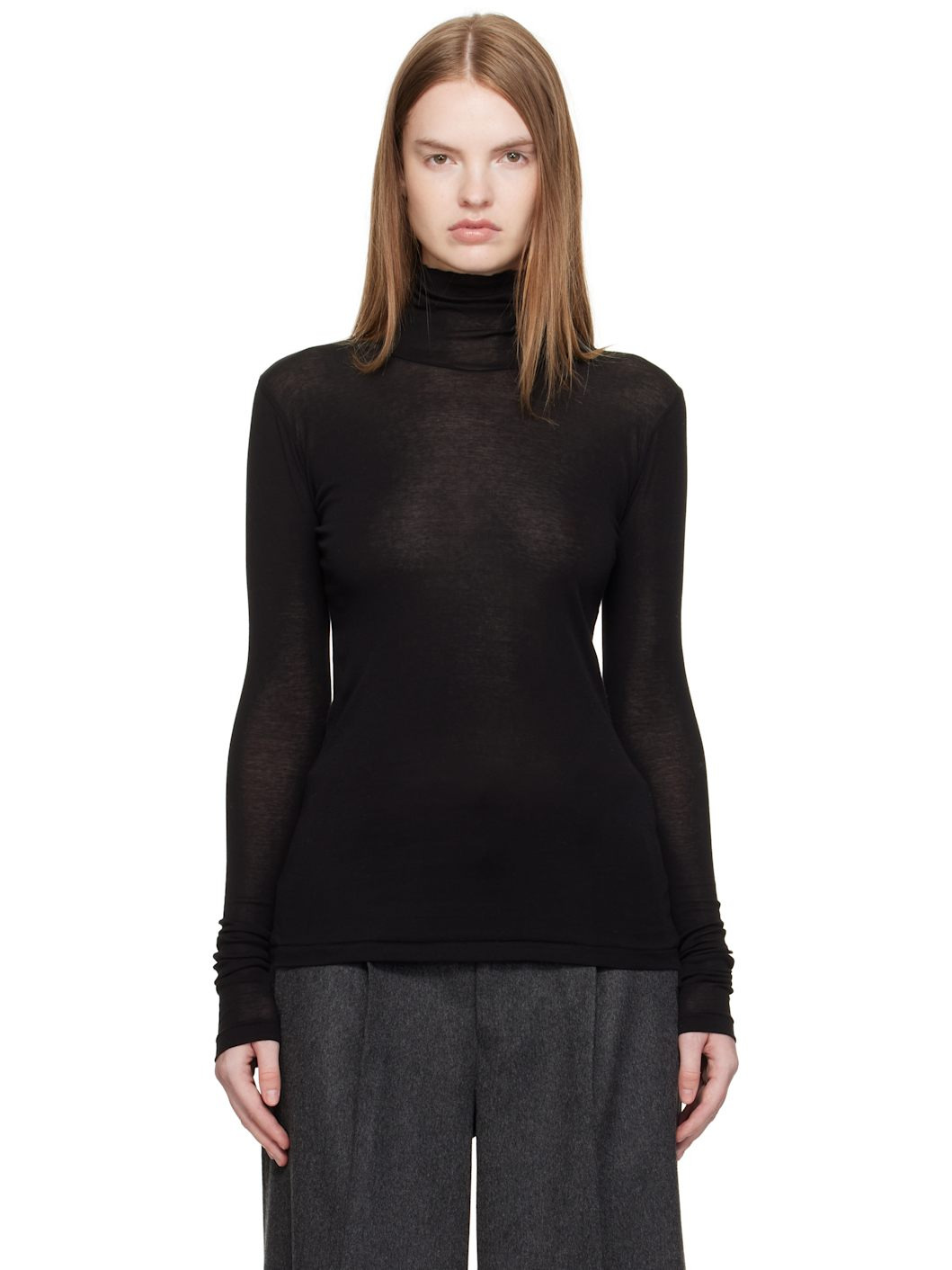 Cotton jersey turtleneck. Sheer and lightweight. Supplier color: Black 100% cotton. Made in Japan 252484F099001