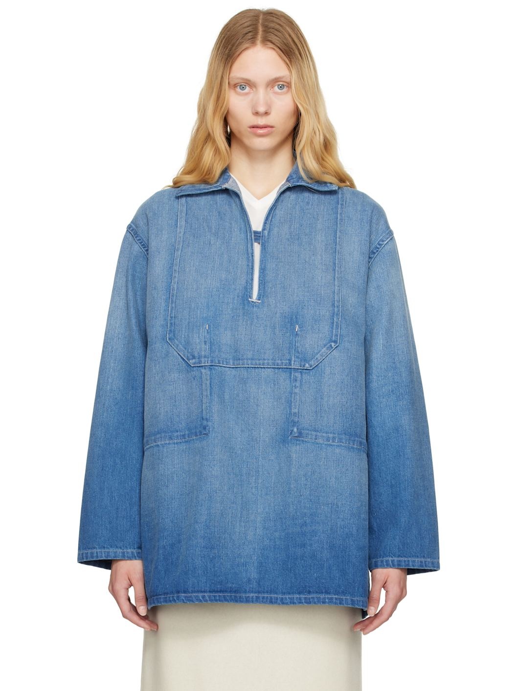 Non-stretch denim shirt. Fading throughout. · Paneled construction · Spread collar · Button fastening at open placket Supplier color: Light indigo 100% cotton. Made in Japan 252484F109000