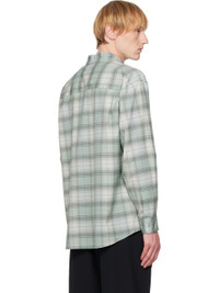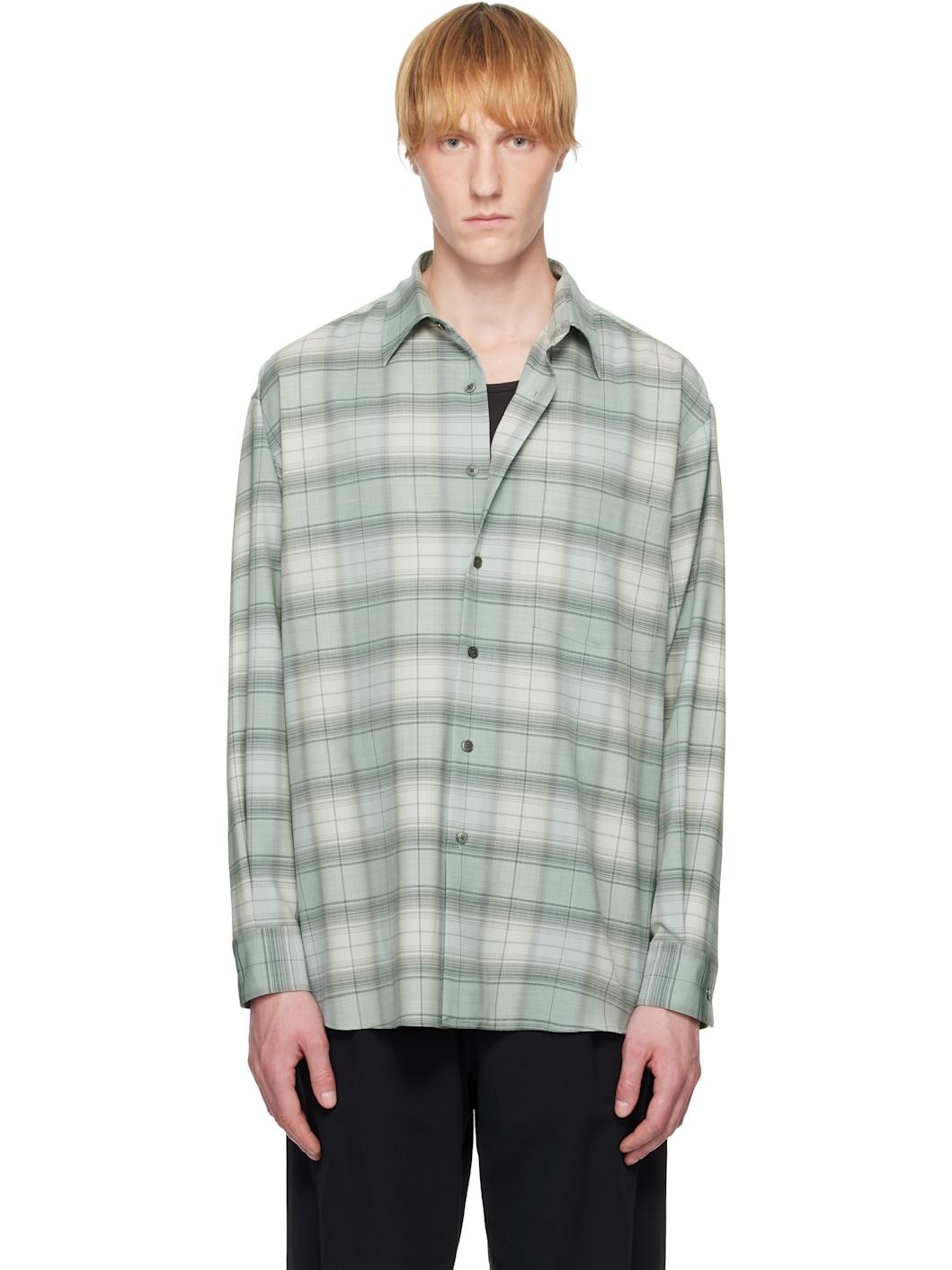 Plain-woven super 120s wool shirt. Check pattern throughout. · Spread collar · Button closure · Patch pocket · Shirttail hem · Dropped shoulders · Single-button barrel cuffs · Twin pleats at back yoke Supplier color: Blue green check 100% wool. Made in Japan 252484M192016