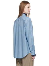 Washed cotton poplin shirt. · Spread collar · Button closure · Shirttail hem · Buttoned barrel cuffs · Twin pleats at back yoke · Mother-of-pearl hardware Supplier color: Blue 100% cotton. Made in Japan 252484F109010