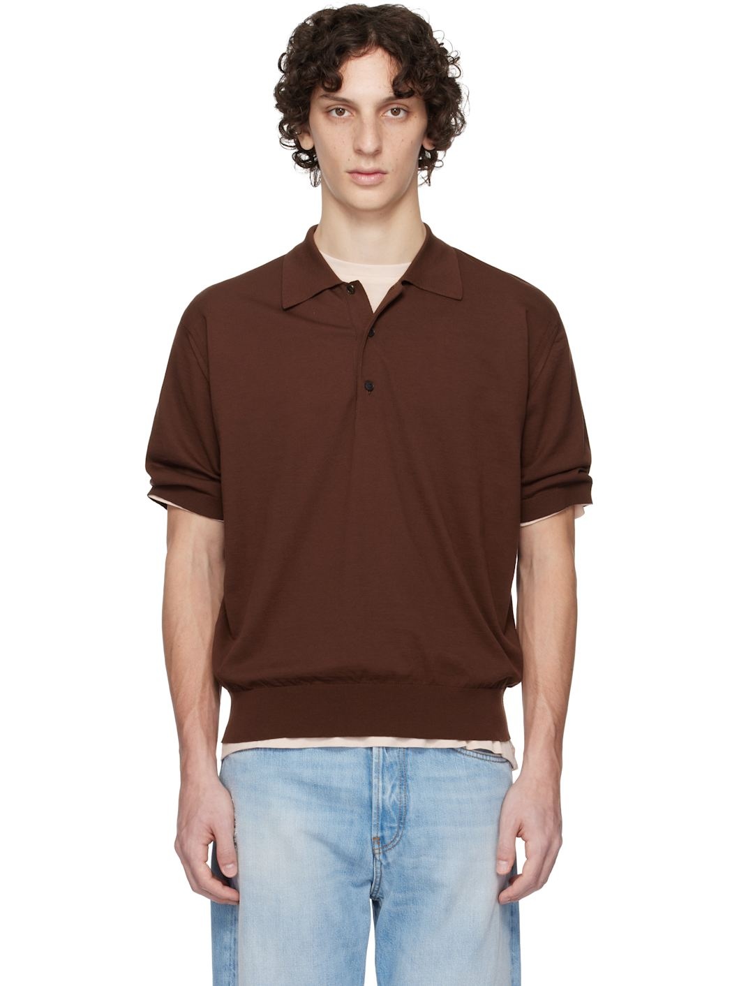 Knit extra-long staple Sea Island cotton polo. · Spread collar · Three-button placket · Rib-knit hem and cuffs Supplier color: Brown 100% cotton. Made in Japan 252484M212004