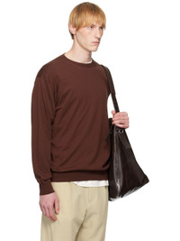 Knit extra-long staple cotton sweater. · Rib-knit crewneck, hem, and cuffs · Dropped shoulders Supplier color: Brown 100% cotton. Made in Japan 252484M201001