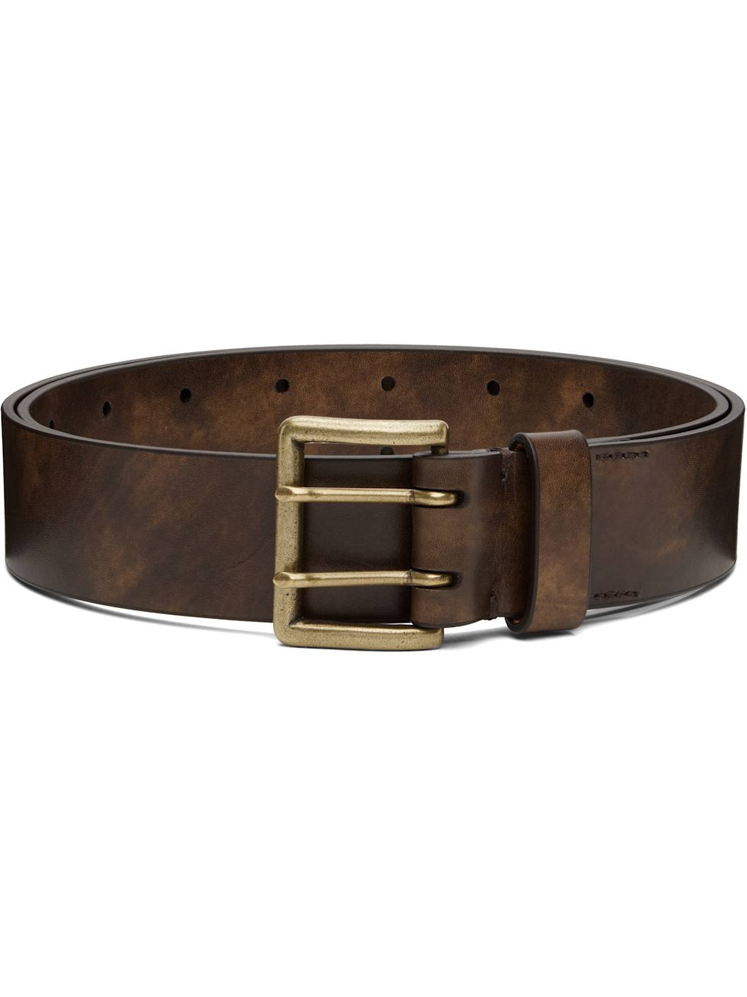 Buffed calfskin belt. · Distressing throughout · Pin-buckle fastening · Brass-tone hardware · W1.5" Supplier color: Brown Calfskin. Made in Japan 252484F001000