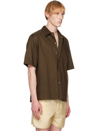 Brown Washed Finx Typewriter Open Collar Half Sleeved Shirt