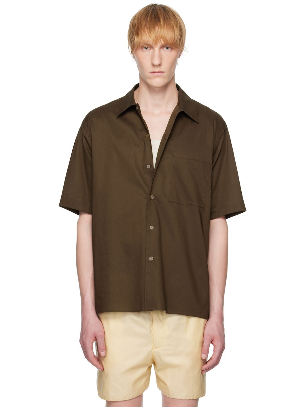 Cotton poplin shirt. · Spread collar · Button closure · Patch pocket · Vented side seams · Twin pleats at back yoke Supplier color: Dark brown 100% cotton. Made in Japan 252484M192000