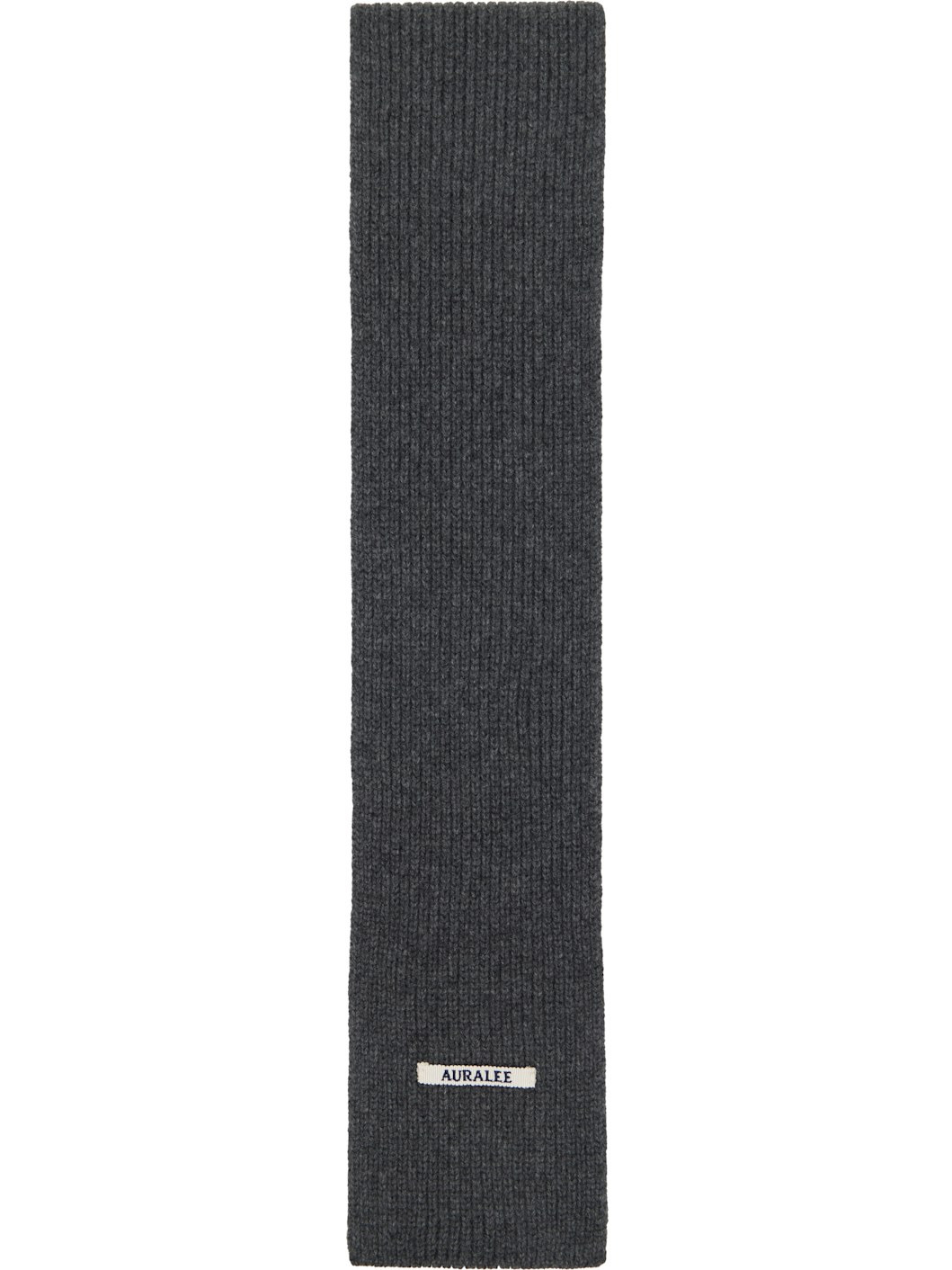 Rectangular knit cashmere scarf. · Logo patch at end · L60" x W5" Supplier color: Charcoal 100% cashmere. Made in Japan 252484F029001