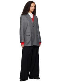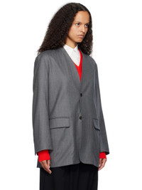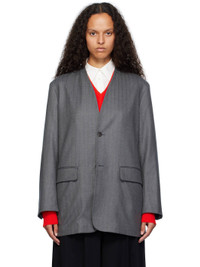 Brushed Super 180's wool- and silk-blend herringbone twill blazer. Stripes throughout. · Relaxed-fit · Y-neck · Button closure · Flap pockets · Dropped shoulders · Single-button surgeon's cuffs · Twin vents at back hem · Partial satin lining Supplier color: Top gray Body: 99% wool, 1% silk. Lining: 100% cupro. Made in Japan 242484F057005