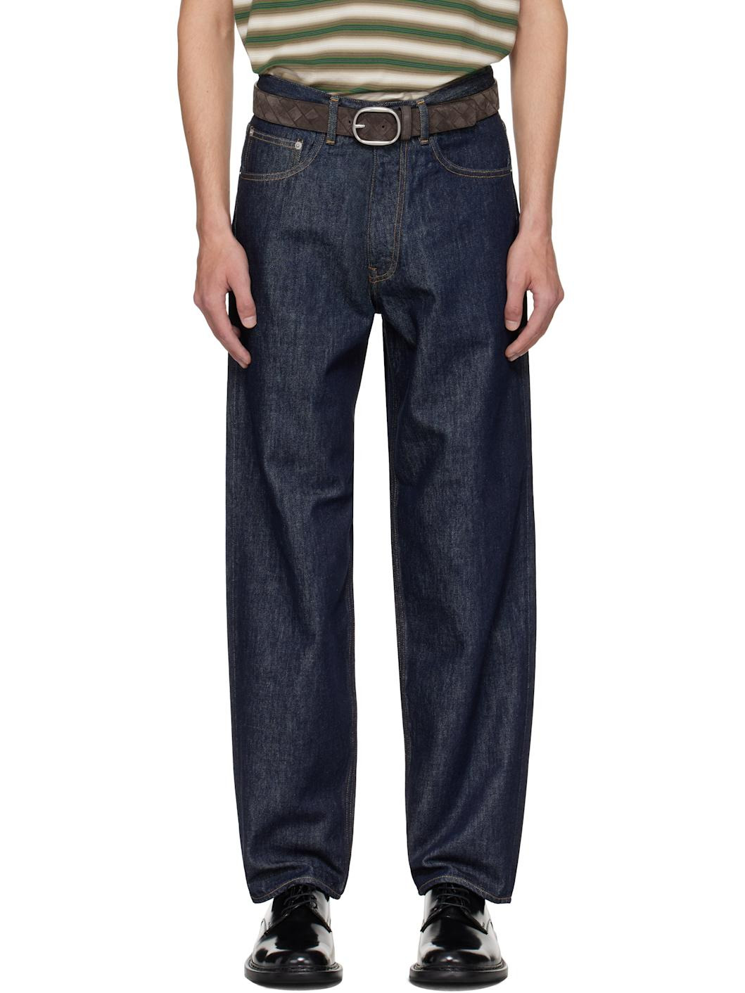 Indigo rope-dyed non-stretch denim jeans. · Tapered, wide-leg · Belt loops · Five-pocket styling · Zip fly · Logo-engraved silver-tone hardware · Contrast stitching in tan Supplier color: Indigo 100% cotton. Made in Japan 252484M186002