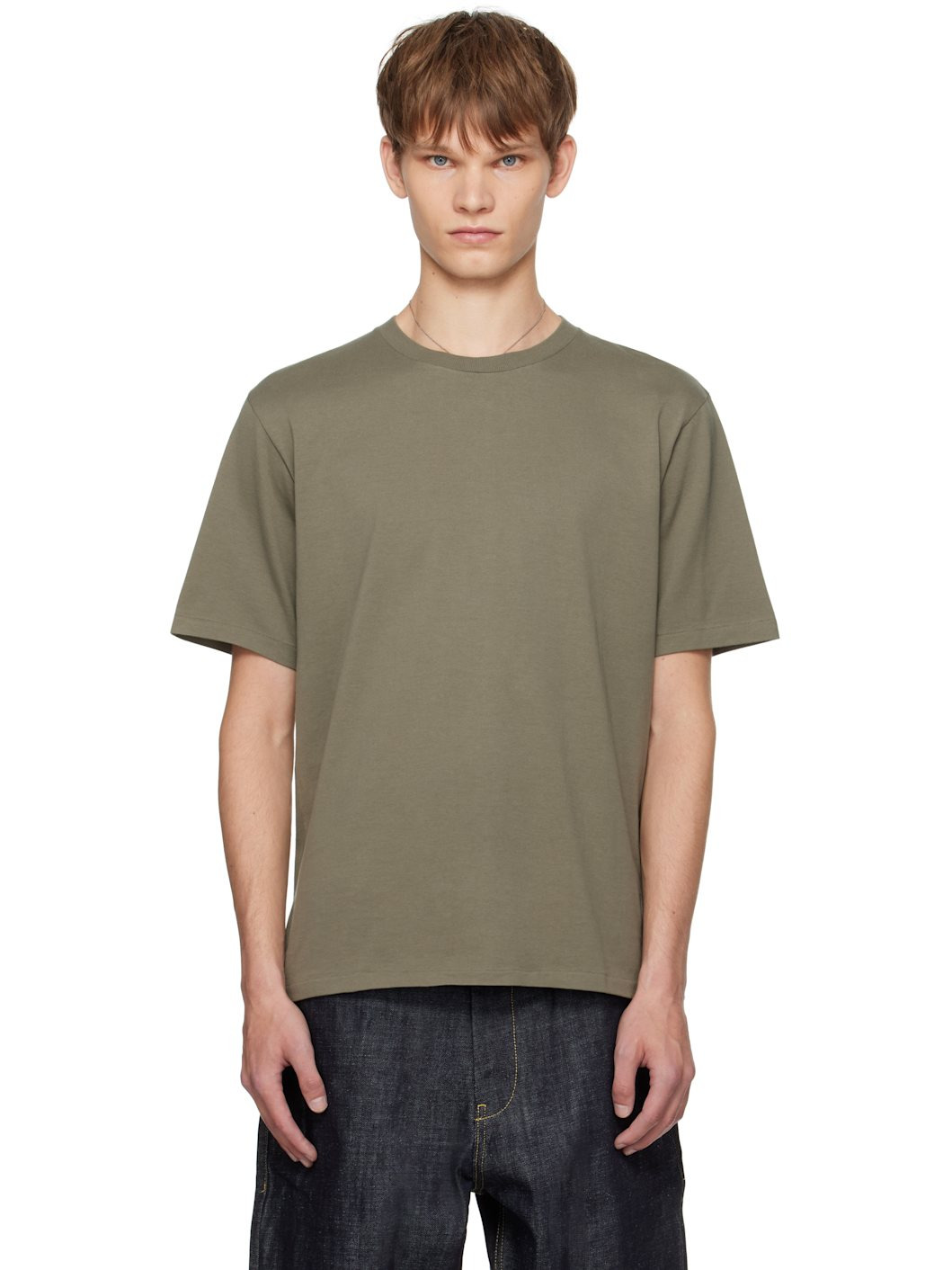 Extra-long staple pima cotton jersey T-shirt. Rib-knit crewneck. Supplier color: Khaki 100% cotton. Made in Japan 252484M213012