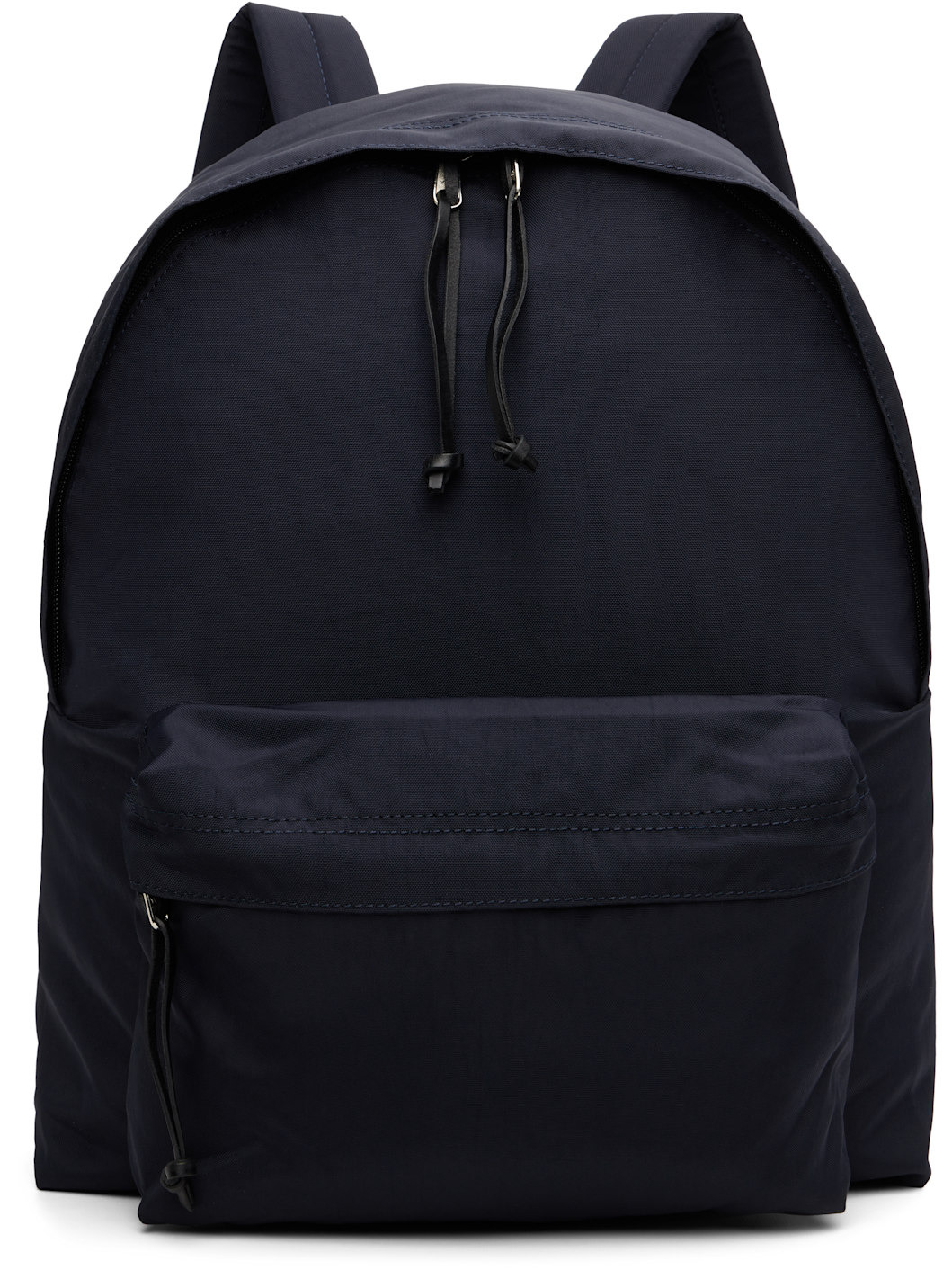 Nylon canvas backpack. · 210 denier · Fixed webbing and leather carry handle · Adjustable padded shoulder straps · Zip compartment at face · Two-way zip closure · Laptop compartment at interior · Canvas lining · H18" x W12" x D5.5" Part of the AURALEE x AETA collaboration. Supplier color: Dark navy 100% nylon. Made in Japan 252484M166001