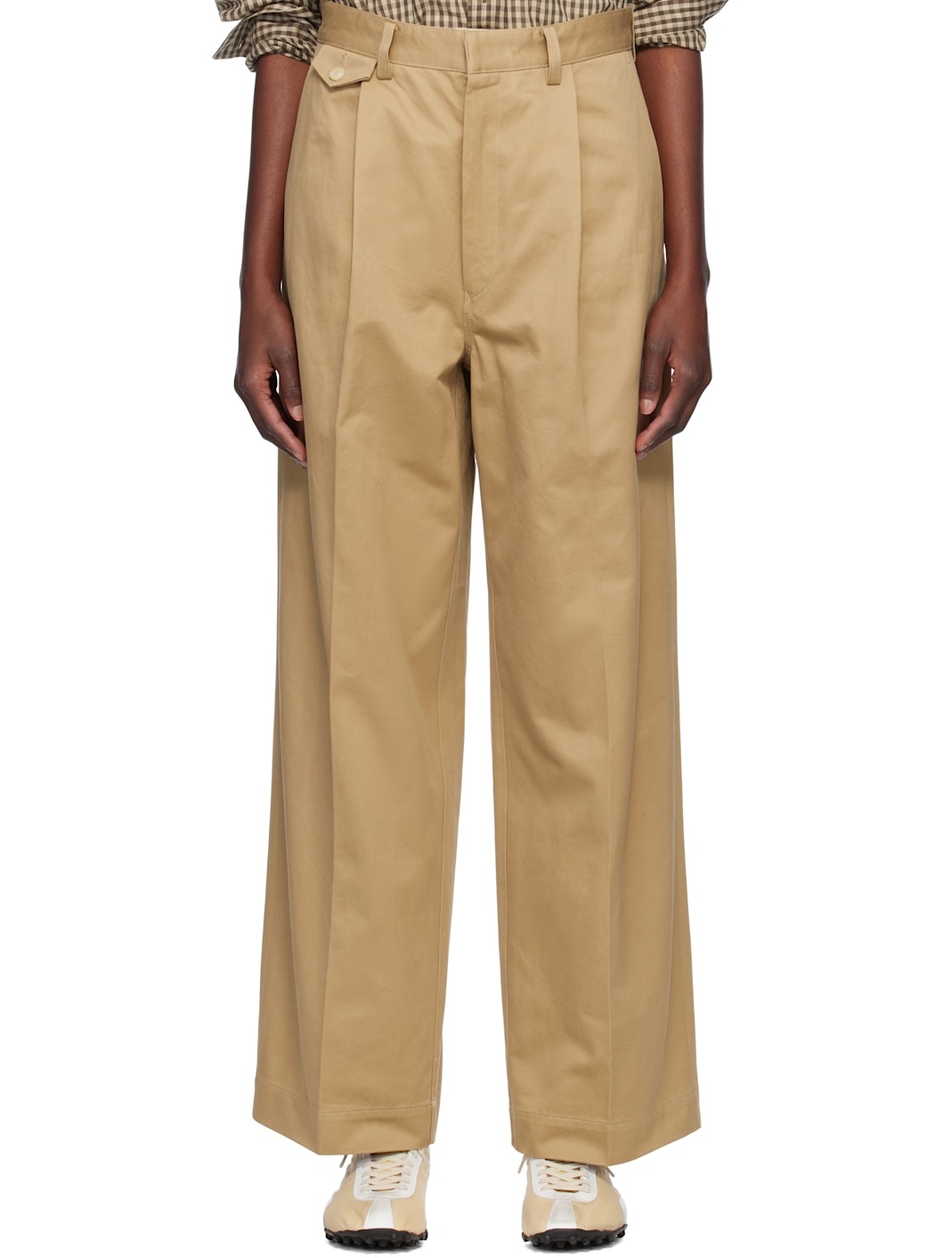Wide-leg cotton twill trousers. · Belt loops · Five-pocket styling · Zip fly · Pleats at front · Creased legs Supplier color: Camel brown 100% cotton. Made in Japan 251484F087007