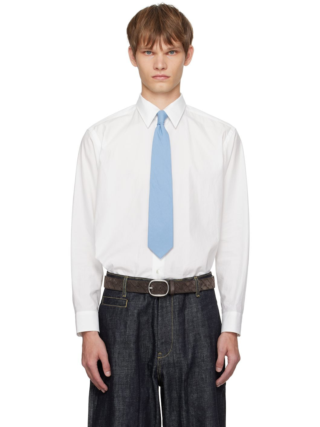 Washed extra-long staple Finx cotton twill shirt. · Spread collar · Button closure · Shirttail hem · Buttoned barrel cuffs · Twin pleats at back yoke · Mother-of-pearl hardware Supplier color: White 100% cotton. Made in Japan 252484M192023