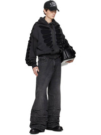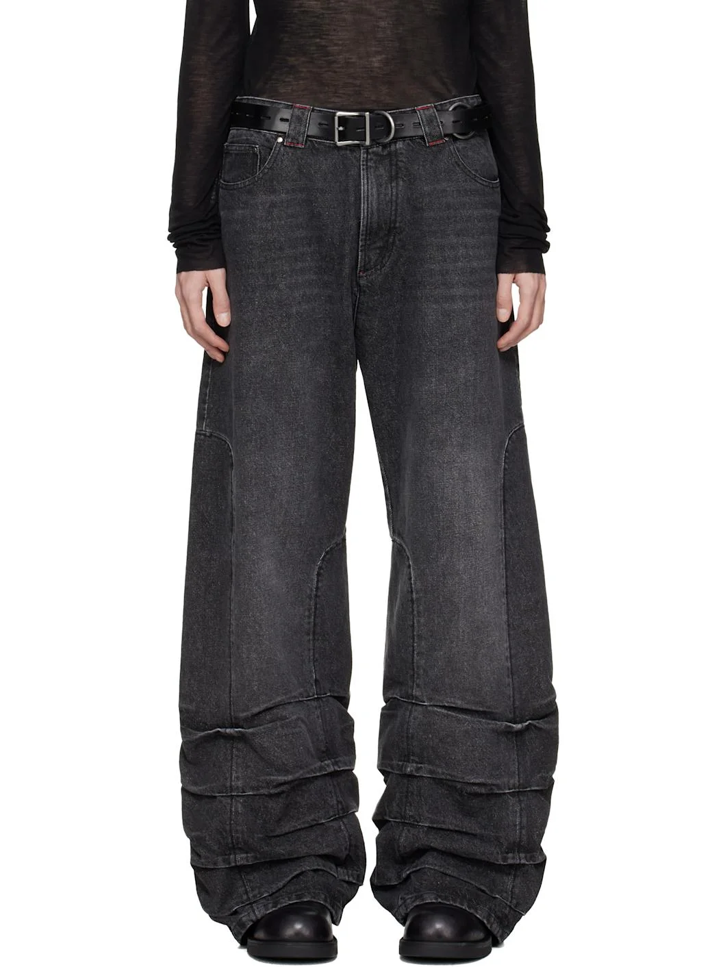 Non-stretch denim jeans. · Fading throughout · Five-pocket styling · Red stitching at belt loops and pockets · Paneling and pleating at lower legs · Embroidered logo graphic at back pocket Supplier color: Black 100% cotton. Made in Portugal 252094M186000