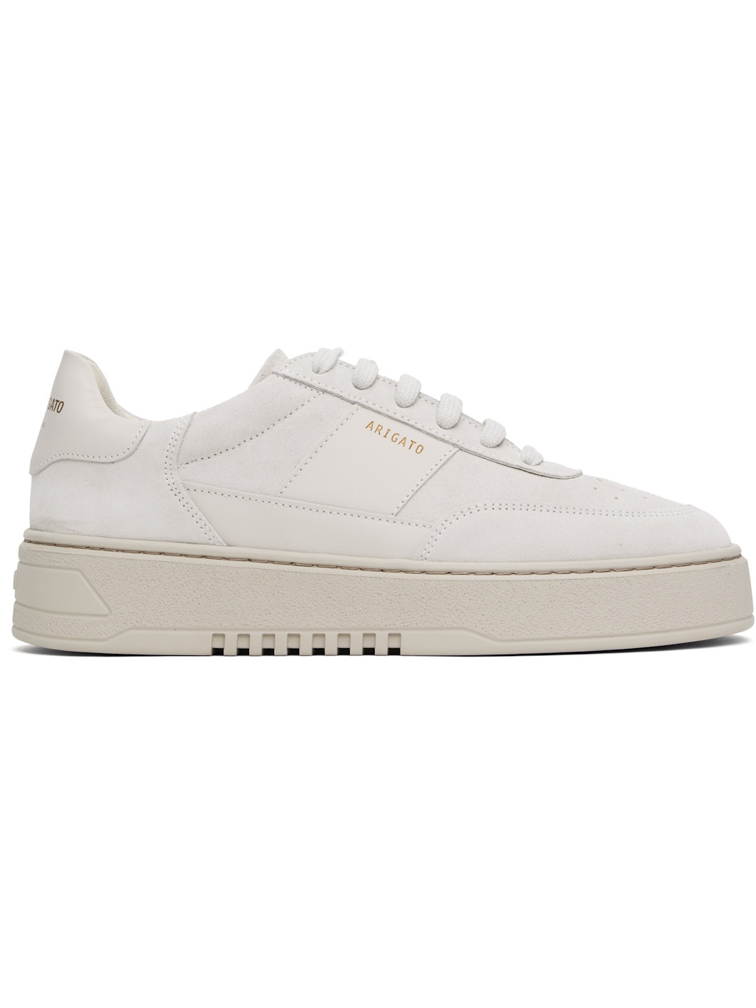 Handcrafted low-top LWG-certified suede and buffed leather sneakers in beige. · Perforated detailing at toe · Lace-up closure · Padded tongue and collar · Logo stamp at outer side and heel tab · Buffed leather, suede, and recycled mesh lining · Logo embossed at crepe rubber midsole · Treaded rubber sole Supplier color: Beige/Beige Upper: leather. Sole: rubber. Made in Portugal 251307M237026