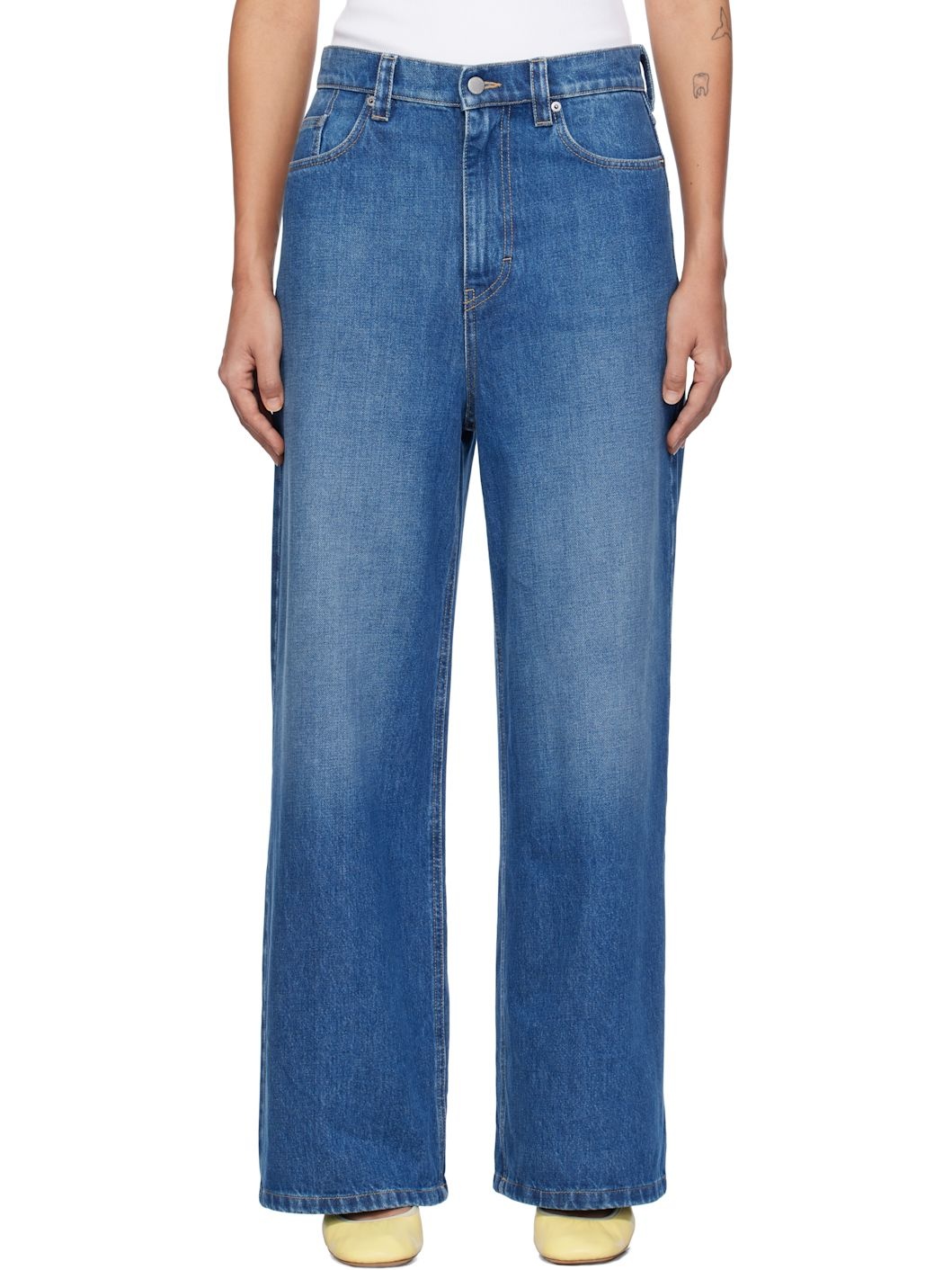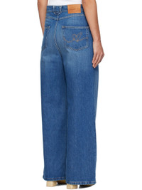 Relaxed-fit and wide-leg non-stretch denim jeans. Fading throughout. · Belt loops · Five-pocket styling · Zip-fly · Leather logo patch at back waistband · Logo embroidered at back pocket · Logo-engraved silver-tone hardware · Contrast stitching in beige Supplier color: Mid blue 100% cotton. Made in Italy 242307F069000