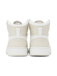 Handcrafted low-top LWG-certified buffed leather and nubuck sneakers in off-white and beige. Perforated detailing throughout. · Lace-up closure · Textile logo flag at padded tongue · Padded collar · Gold-tone logo stamp at outer side · Pull-loop at heel tab · Mesh lining · Treaded rubber outsole Supplier color: White/Cremino Upper: leather. Sole: rubber. Made in Portugal 231307F127007