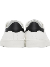 Handcrafted low-top LWG-certified buffed leather sneakers in white and black. · Lace-up closure · Padded tongue and collar · Logo stamp at outer side · Buffed leather and microfiber lining · Logo embossed at midsole · Treaded rubber sole Supplier color: White/Black Upper: leather. Sole: rubber. Made in Portugal 251307M237090