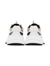 Handcrafted low-top paneled buffed leather and mesh sneakers in white, black, and orange. Bonded and reflective trim throughout. · Lace-up closure · Rubberized logo patch and pull-loop at tongue · Padded tongue and collar · Logo printed at outer side · Removable padded footbed · Mesh lining · Treaded rubber sole Supplier color: White/Black/Orange Upper: textile, leather. Sole: rubber. Made in Portugal 232307F128012