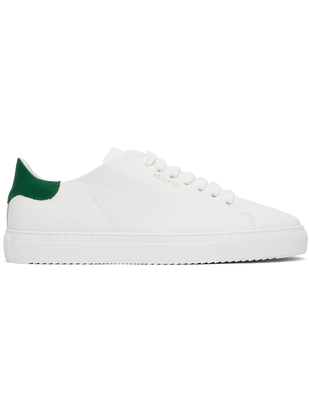 Handcrafted low-top LWG-certified buffed leather sneakers in white and green. · Lace-up closure · Padded tongue and collar · Logo stamp at outer side · Suede, buffed leather, and recycled mesh lining · Logo embossed at midsole · Treaded rubber sole Supplier color: White/Green Upper: leather. Sole: rubber. Made in Portugal 251307M237089