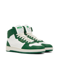 Handcrafted high-top paneled LWG-certified buffed leather and nubuck sneakers in white and green. · Perforated detailing throughout · Lace-up closure · Logo patch at padded tongue · Padded collar · Logo stamp at outer side · Pull-loop at heel counter · Recycled polyester mesh lining · Removable padded footbed · Logo-embossed rubber midsole · Treaded rubber sole Supplier color: White/Green Upper: leather. Sole: rubber. Made in Portugal 232307F127002
