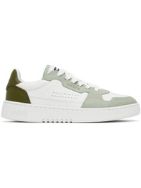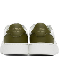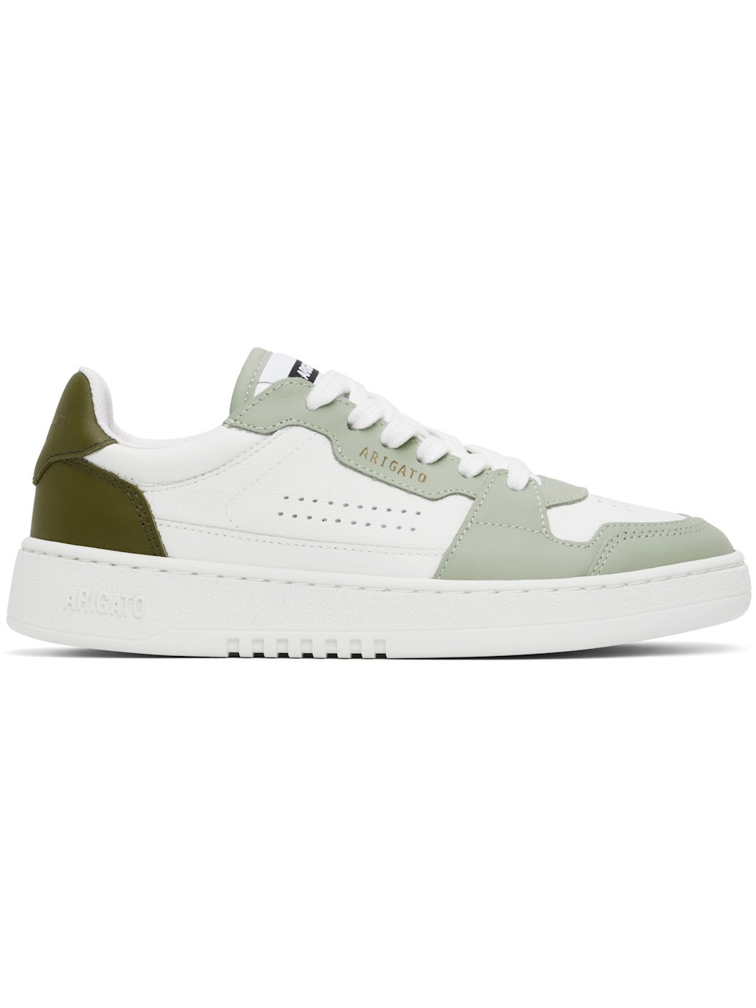 Low-top paneled grained leather sneakers in white and green. · Handcrafted · Perforated detailing throughout · Lace-up closure · Logo patch at padded canvas tongue · Padded collar · Logo stamp at outer side and heel tab · Recycled mesh and faux-suede lining · Logo embossed at textured rubber midsole · Treaded rubber sole Supplier color: White/Green Upper: leather, textile. Sole: rubber. Made in Portugal 242307F128030