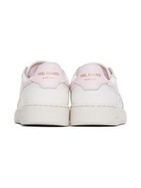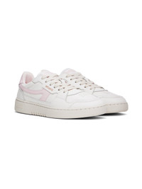 Handcrafted low-top buffed leather and SEAQUAL® YARN canvas sneakers in white and pink. · Perforated detailing throughout · Lace-up closure · Logo patch at padded tongue · Padded collar · Logo applique at sides · Logo stamp at outer side and heel tab · Recycled mesh and faux-suede lining · Logo embossed at textured rubber midsole · Treaded rubber sole Supplier color: White/Pink Upper: leather, textile. Sole: rubber, recycled rubber. Made in Portugal 242307F128003