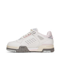 Handcrafted low-top buffed leather and recycled jersey sneakers in white and pink. · Perforated detailing throughout · Lace-up closure · Rubberized logo patch at padded tongue · Padded collar · Rubberized logo applique at outer side and heel · Logo embossed at outer side · Recycled mesh lining · EVA foam rubber midsole · Treaded rubber sole Supplier color: White/Pink Upper: leather, textile. Sole: rubber. Made in Viet Nam 242307F128007