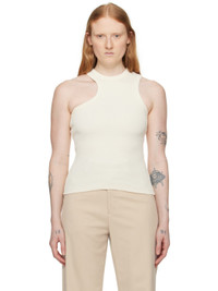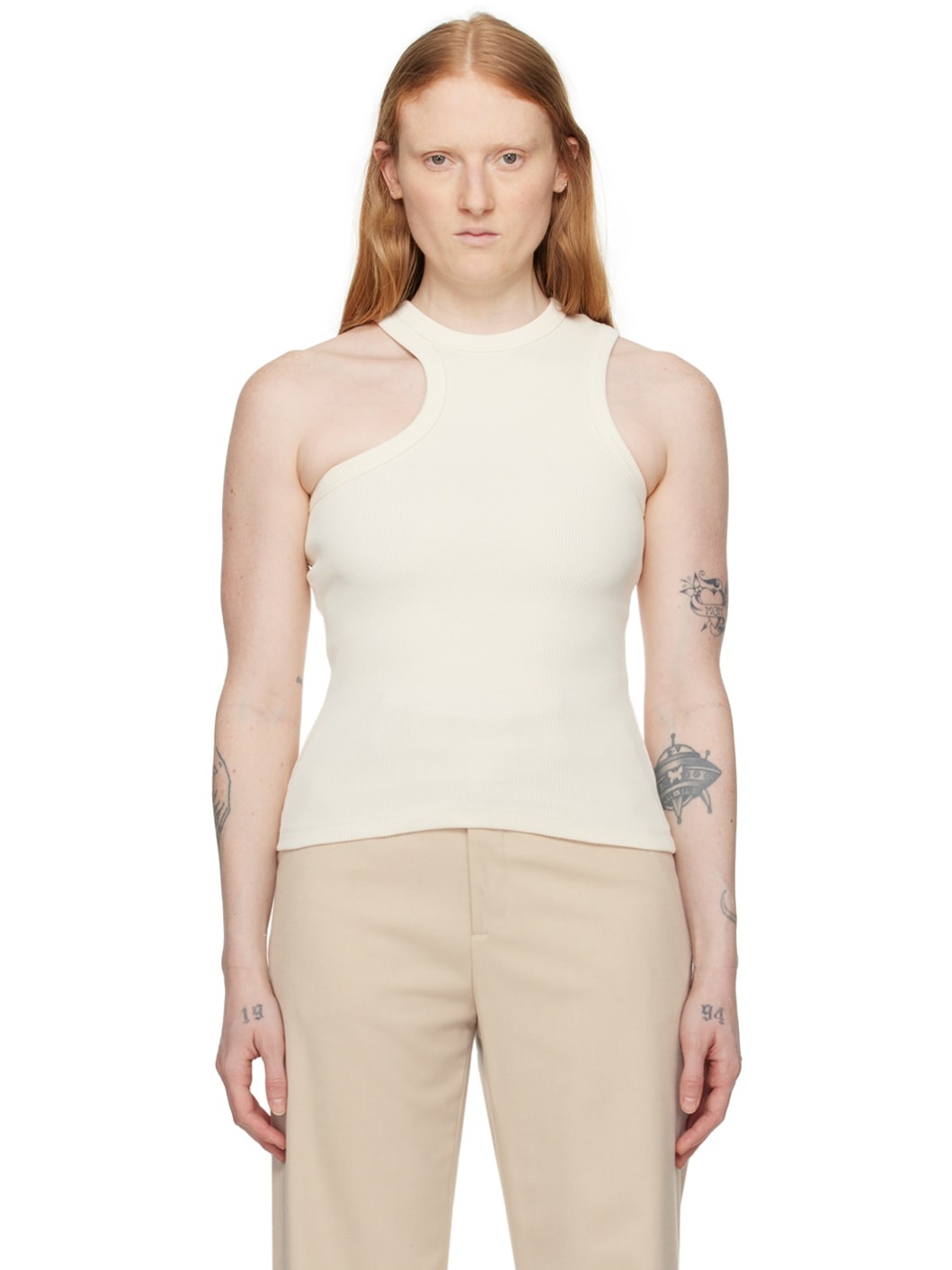 Stretch cotton ribbed jersey tank top. · Asymmetrical construction · Crewneck · Logo embroidered at back collar Supplier color: Pale yellow 98% cotton, 2% elastane. Made in Portugal 241307F111004