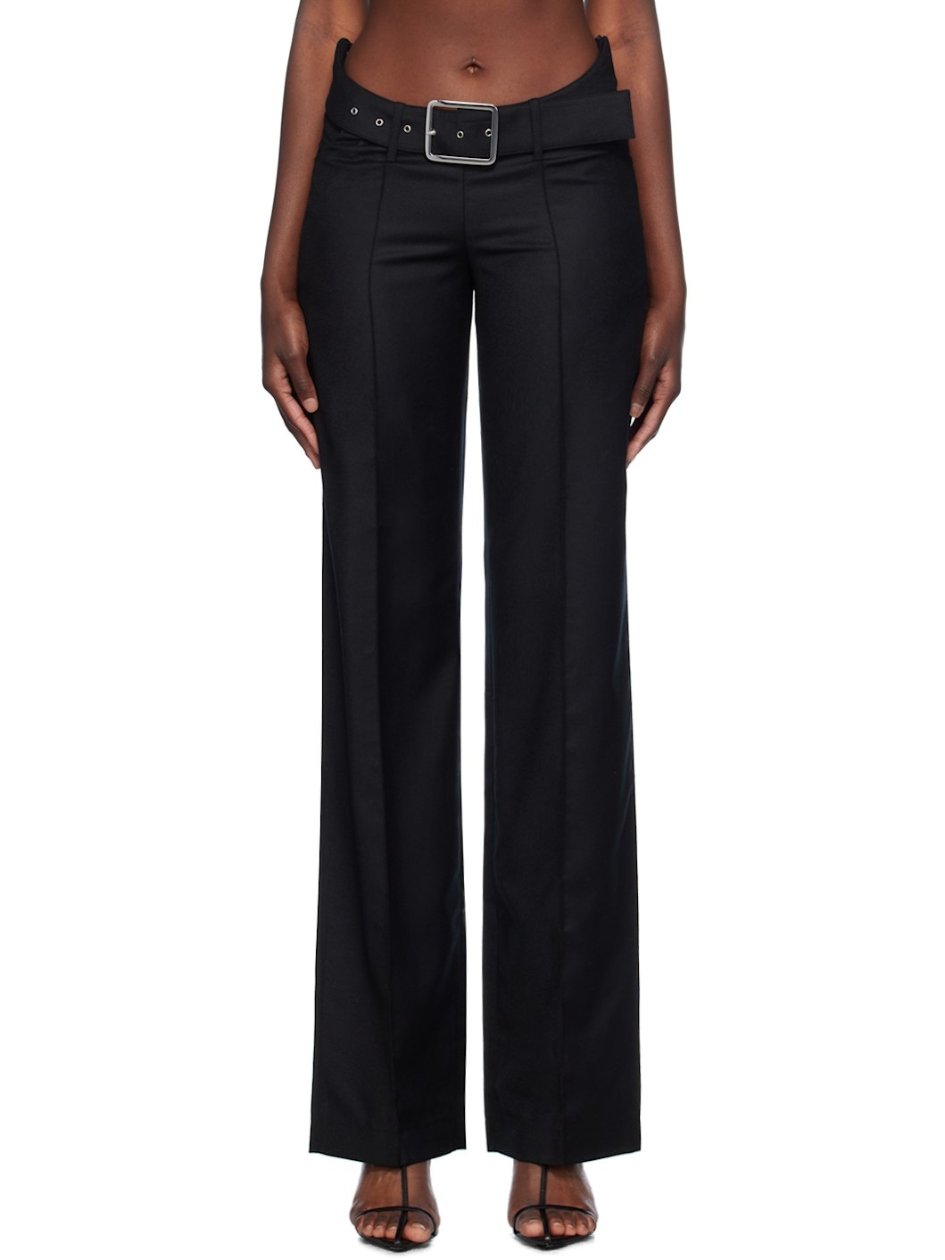 Virgin wool flannel trousers. · Detachable pin-buckle belt at belt loops · Three-pocket styling · Pinched seams at front · Concealed zip closure at side · Unlined Supplier color: Black