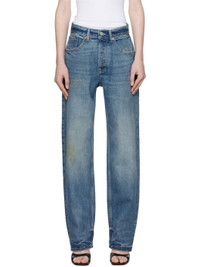 Non-stretch denim jeans. Fading, whiskering, and subtle distressing throughout. · Belt loops · Five-pocket styling · Button-fly · Patch at back waistband Supplier color: Beige wash 100% cotton. Made in Pakistan 251188F069019