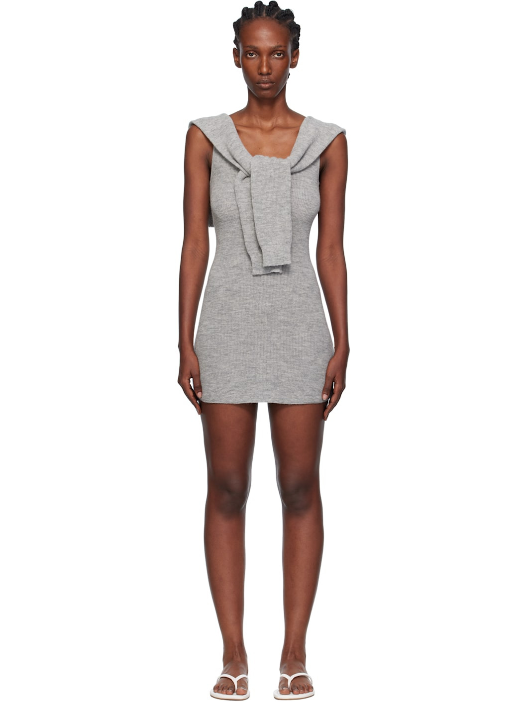 Knit wool-blend minidress · Integrated sweater-style overlay · Scoop neck Supplier color: Gray 53% wool, 30% nylon, 17% alpaca. Made in South Korea 252188F052010