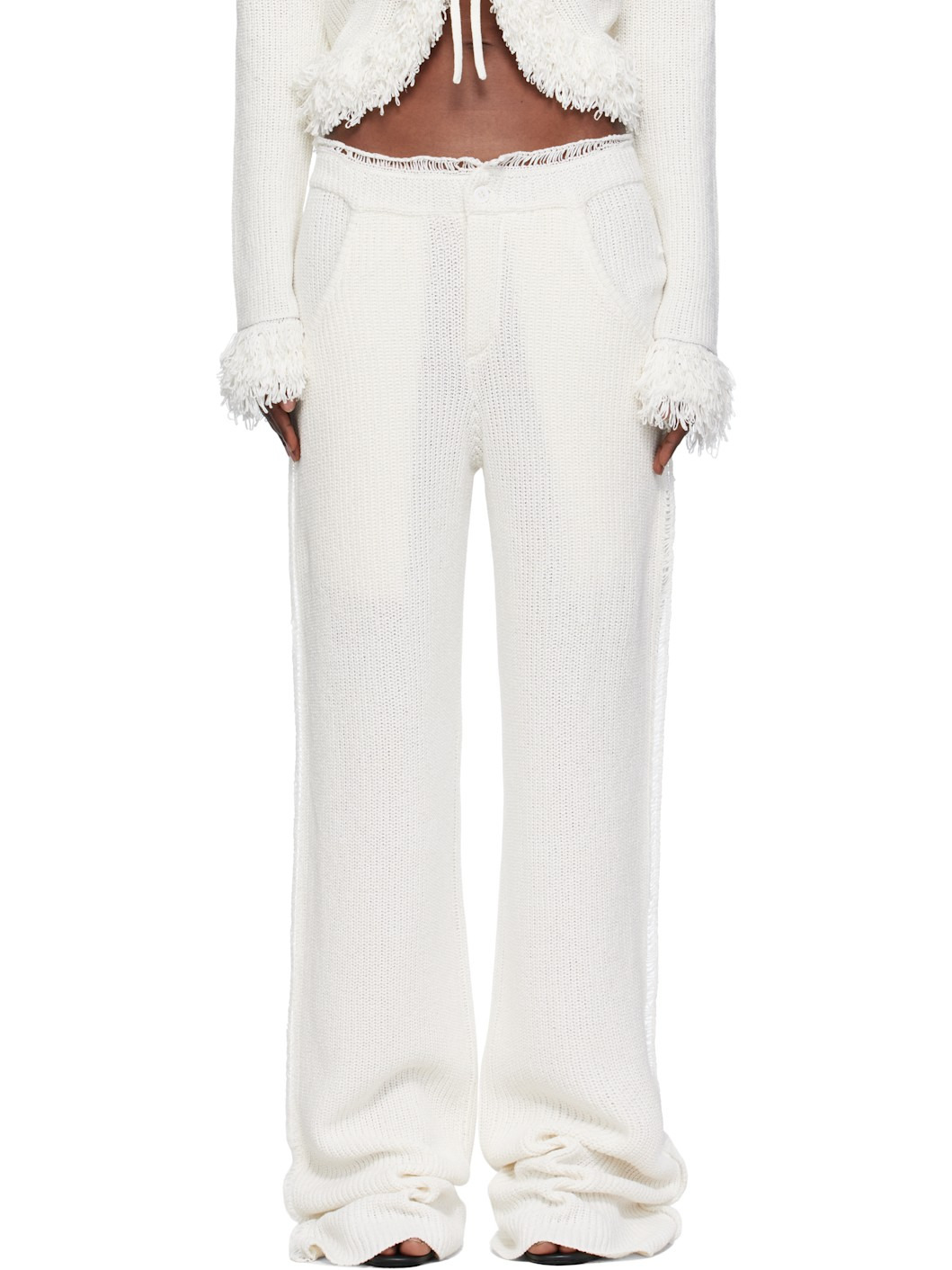 Rib-knit linen- and cotton-blend trousers. · Laddering at waistband and outseams · Four-pocket styling · Zip fly Supplier color: Milk 41% linen, 34% cotton, 25% nylon. Made in South Korea 252188F087017