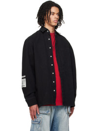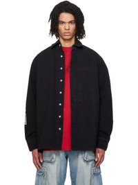 Cotton canvas shirt. Subtle fading throughout. · Spread collar · Concealed button closure · Patch pocket · Logo embroidered at hem · Logo patches at sleeve · Single-button barrel cuffs · Locker loop at back collar · Central seam and logo embroidered at back Supplier color: Canvas black 100% cotton. Made in United States 241198M192011