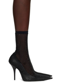 Buffed nappa lambskin heels in black. · Crystal-cut mesh overlay throughout · Pointed toe · Elasticized sock-style collar · Covered stiletto heel with rubber injection · Leather sole · Heel: H4" Supplier color: Black Upper: lambskin, textile. Sole: leather, rubber. Made in Italy 251342F122000