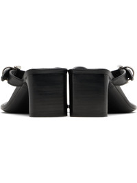 Buffed calfskin heeled sandals. · Square toe · Thong-style strap · Pin-buckle fastening at vamp · Logo stamp at padded goatskin footbed · Stacked leather heel with rubber injection · Calfskin sole Supplier color: Black Upper: calfskin. Sole: calfskin, rubber. Made in Italy 251342F125000