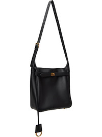 Buffed calfskin shoulder bag in black. · Detachable sheathed keyrings at adjustable crossbody strap · Detachable straps at face · Bumper studs at face · Turn-lock closure · Zip pocket at interior · Bonded nappa lambskin lining · Logo-engraved antiqued gold-tone hardware · H10.5" x W10.25" x D4" Supplier color: Black Calfskin. Made in Italy 252342F046019