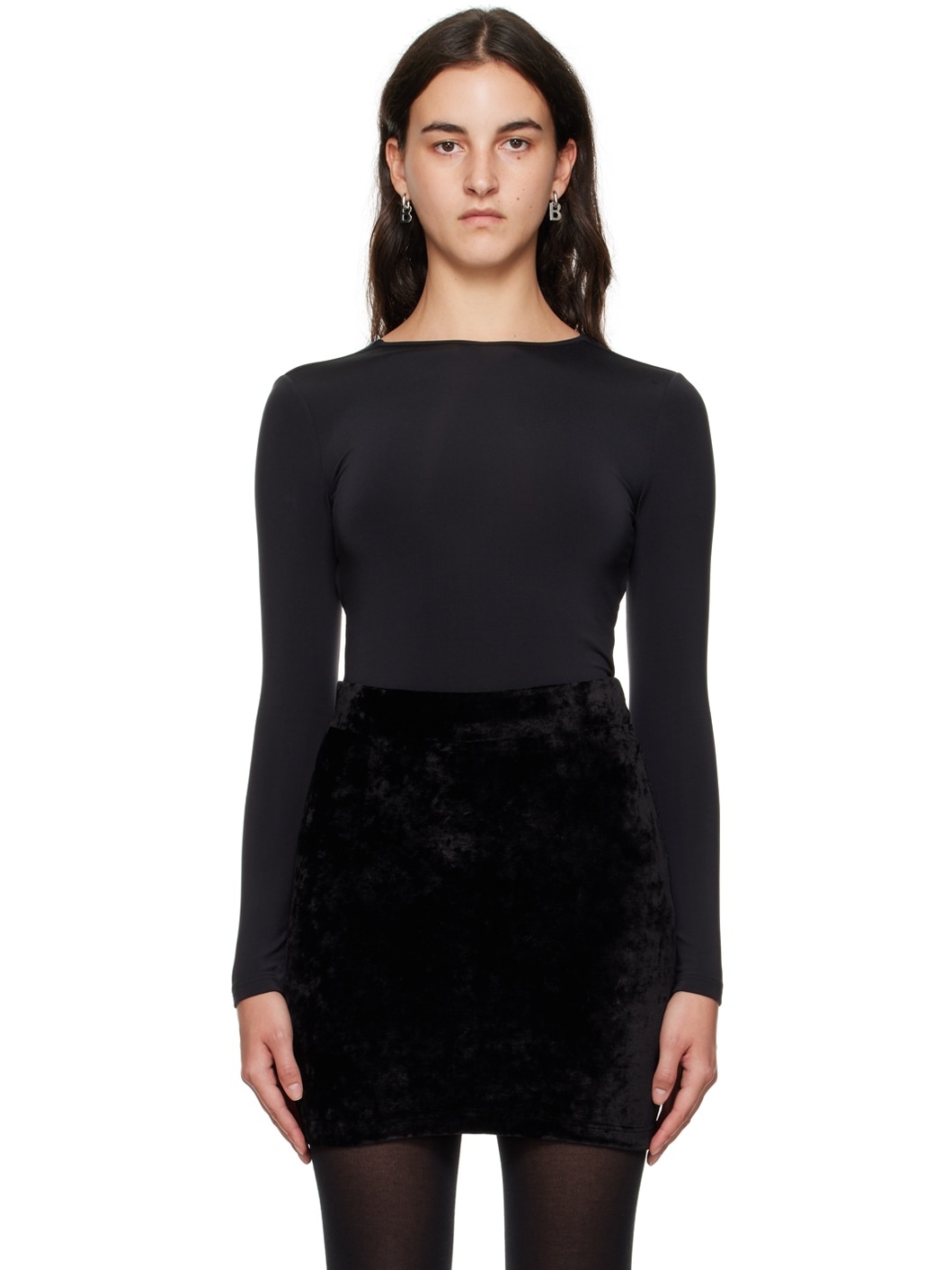 Stretch cupro- and nylon-blend jersey T-shirt. · Crewneck · Logo flag at side seam · Self-tie straps at back collar and hem · Open back Supplier color: Black 67% cupro, 26% polyamide, 7% elastane. Made in Portugal 232342F110001