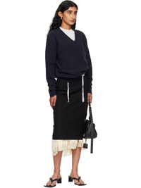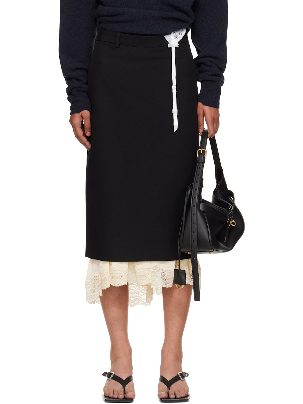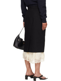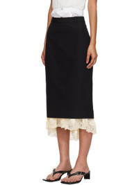 Wool barathea midi skirt. Exposed stretch viscose jersey slip with scalloped lace trim at hem. · Paneled construction · Belt loops · Zip fly · Central vent at front hem · Partial satin lining Supplier color: Black Body 1: 100% wool. Body 2: 92% viscose, 8% elastane. Trim: 80% polyamide, 20% elastane. Lining: 100% cupro. Made in Italy 251342F092001