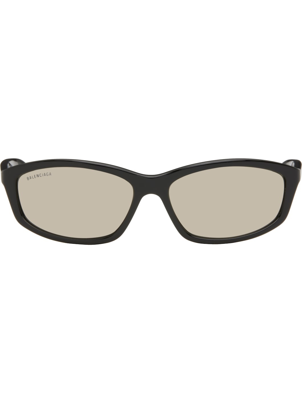 Oval Eastman Acetate Renew™-frame sunglasses in black. · Mirrored gray lenses · 100% UVA/UVB protection, category 3 · Logo etched at lens · Integrated nose pads · Logo engraved at temple · Includes case · Size: 60.15 135 Supplier color: Black/Black/White Acetate. Made in Italy 252342M134011