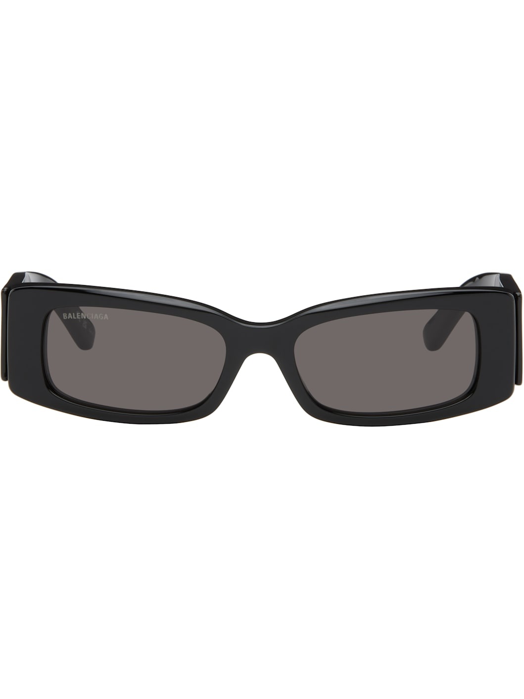 Rectangular acetate-frame sunglasses in black. · Gray lenses · 100% UVA/UVB protection, category 1 · Logo etched at lens · Integrated nose pads · Logo printed at temple · Includes case · Size: 56.18 140 Supplier color: Black/Black/Grey Acetate. Made in Italy 252342M134024