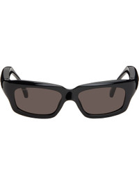 Rectangular injection-molded nylon-frame sunglasses in black. · Bio-based nylon · Gray lenses · Logo etched at lens · Logo hardware at temples · Includes case · Size: 60.18 140 Supplier color: Black/Black/Grey Polyamide. Made in Italy 252342M134018