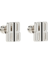 Pair of stud earrings in silver-tone brass. · Logo cutout at face · Post-stud fastening · H0.5" x W0.5" Supplier color: Silver Brass. Made in Italy 251342F022003